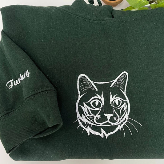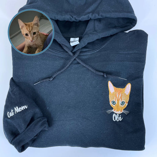 Custom Full-Color Cat Face Photo Embroidered Hoodie