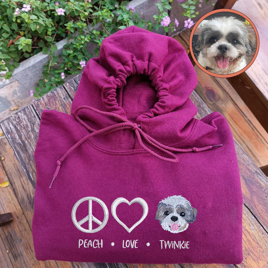 Custom Peace Love Pet With Pet Names Embroidered Hoodie