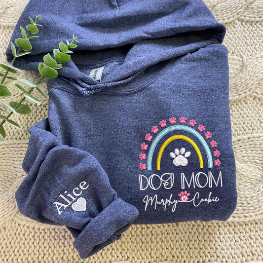 Custom Dog Mom Rainbow With Names Embroidered Hoodie