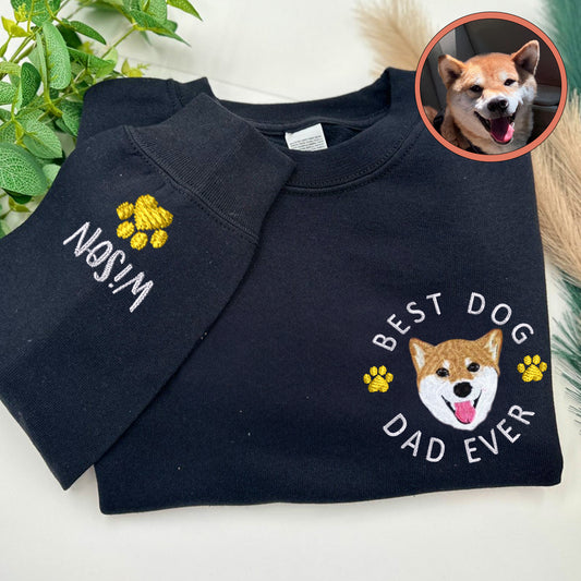 Custom Full-Color Best Dog Dad Ever Embroidered Sweatshirt