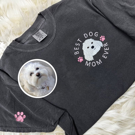 Custom Full-Color Best Dog Mom Ever Embroidered T-Shirt