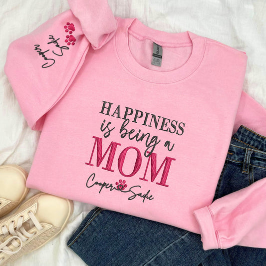 Custom Happiness Is Being A Mom With Names Embroidered Sweatshirt