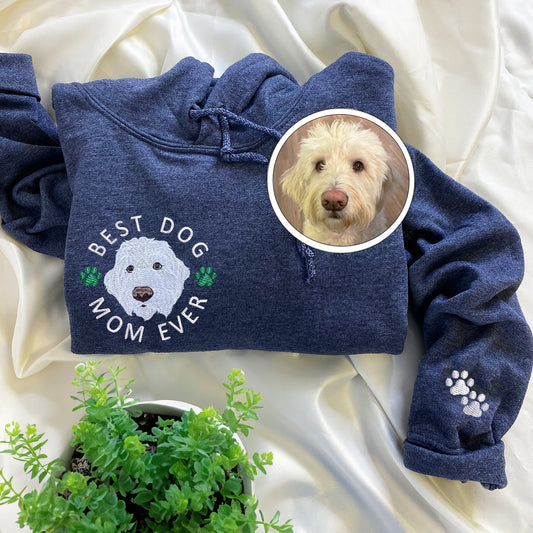 Custom Full-Color Best Dog Mom Ever Embroidered Hoodie
