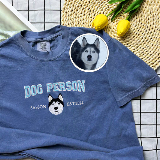 Custom Full-Color Varsity Dog Person Embroidered T-Shirt