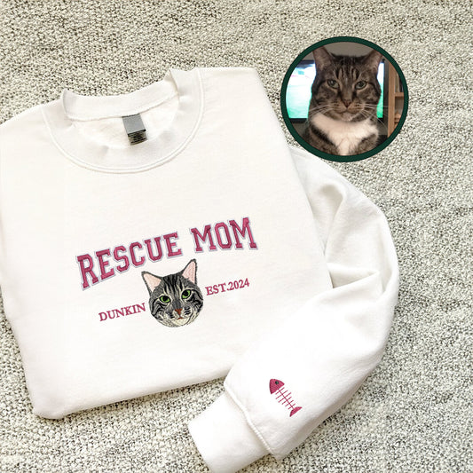 Custom Full-Color Varsity Rescue Mom Embroidered Sweatshirt