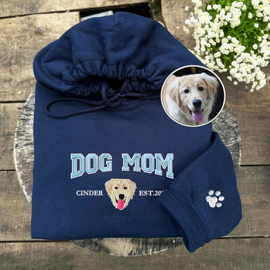 Custom Full-Color Varsity Dog Mom Embroidered Hoodie