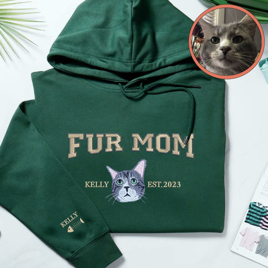 Custom Full-Color Varsity Fur Mom Embroidered Hoodie