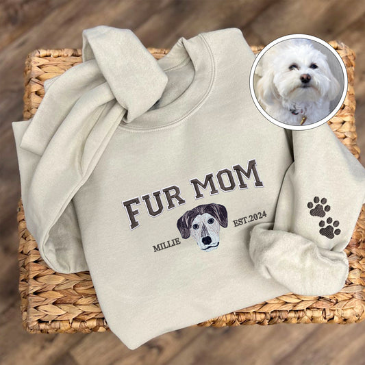 Custom Full-Color Varsity Fur Mom Embroidered Sweatshirt