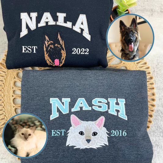 Custom Full-Color Pet Face Photo Embroidered Sweatshirt