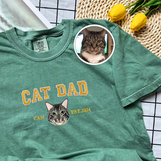 Custom Full-Color Varsity Cat Dad Embroidered T-Shirt