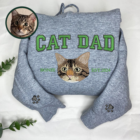 Custom Full-Color Varsity Cat Dad Embroidered Hoodie
