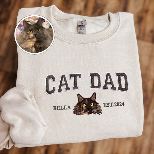 Custom Full-Color Varsity Cat Dad Embroidered Sweatshirt