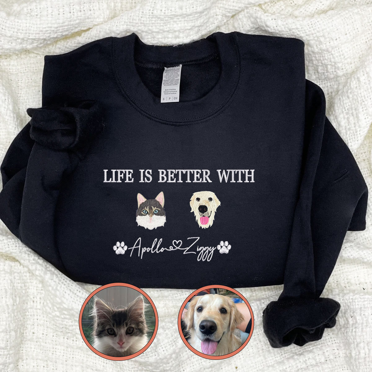 Discover the perfect way to celebrate your unique bond with your pet with our Custom Full-Color Life Is Better With Embroidered Sweatshirt. Designed for pet parents who cherish their feline friends, this Sweatshirt comes with custom embroidery that showcases a beautiful rendition of your pet. Made from premium materials, it ensures comfort and durability, making it a lasting tribute to your pet. Ideal for pet owners looking for a special gift, our personalized pet Sweatshirt is great for Valentine's Day, Mother's Day, Father's Day, Christmas, or simply to brighten someone's day. Its cozy and sturdy design makes it a cherished item for years, always reminding you of the love you share with your pet.