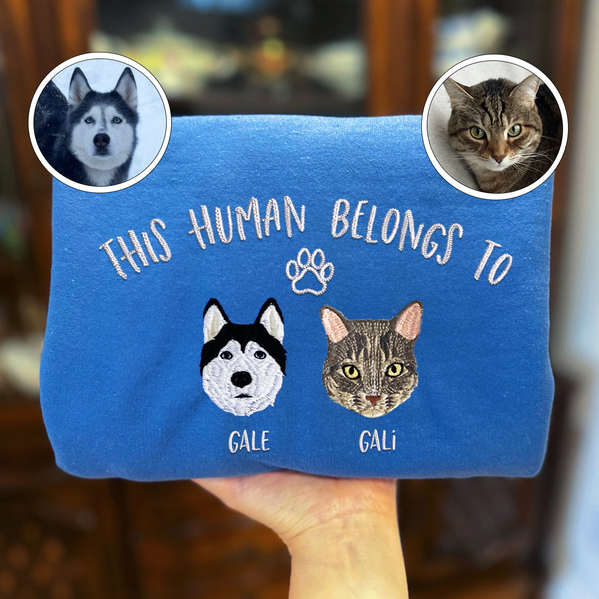 Discover the perfect way to celebrate your unique bond with your pet with our Custom Full-Color This Human Belongs To Embroidered Sweatshirt. Designed for pet parents who cherish their feline friends, this Sweatshirt comes with custom embroidery that showcases a beautiful rendition of your pet. Made from premium materials, it ensures comfort and durability, making it a lasting tribute to your pet. Ideal for pet owners looking for a special gift, our personalized pet Sweatshirt is great for Valentine's Day, Mother's Day, Father's Day, Christmas, or simply to brighten someone's day. Its cozy and sturdy design makes it a cherished item for years, always reminding you of the love you share with your pet.