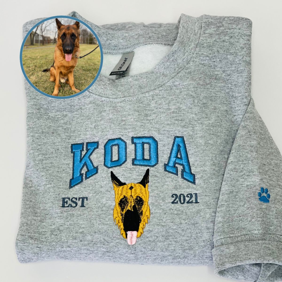 This high-quality sweatshirt features a vibrant, full-color embroidered dog face design, perfect for showcasing your love for your furry friend. Ideal for casual outings or lounging at home, this sweatshirt combines comfort and style effortlessly.