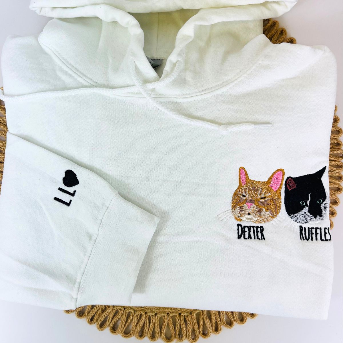 Custom Full-Color Cat Face Photo Embroidered Hoodie