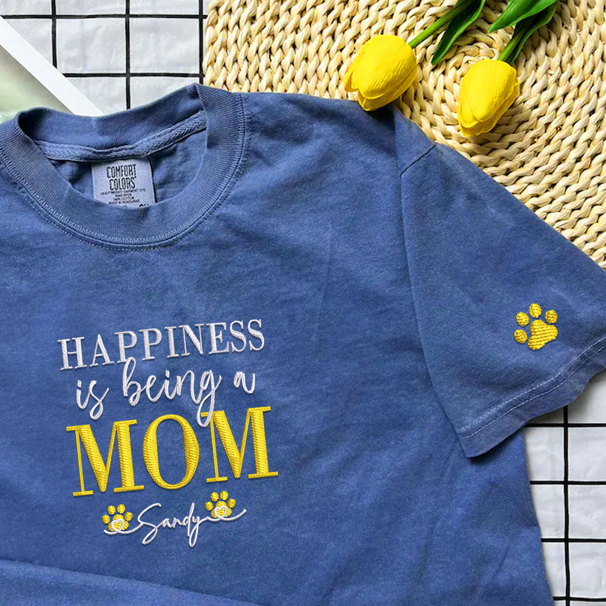 Discover the perfect way to celebrate your unique bond with your pet with our Custom Happiness Is Being A Mom With Names Embroidered T-Shirt. Designed for pet parents who cherish their feline friends, this T-Shirt comes with custom embroidery that showcases a beautiful rendition of your pet. Made from premium materials, it ensures comfort and durability, making it a lasting tribute to your pet. Ideal for pet owners looking for a special gift, our personalized pet T-Shirt is great for Valentine's Day, Mother's Day, Father's Day, Christmas, or simply to brighten someone's day. Its cozy and sturdy design makes it a cherished item for years, always reminding you of the love you share with your pet.