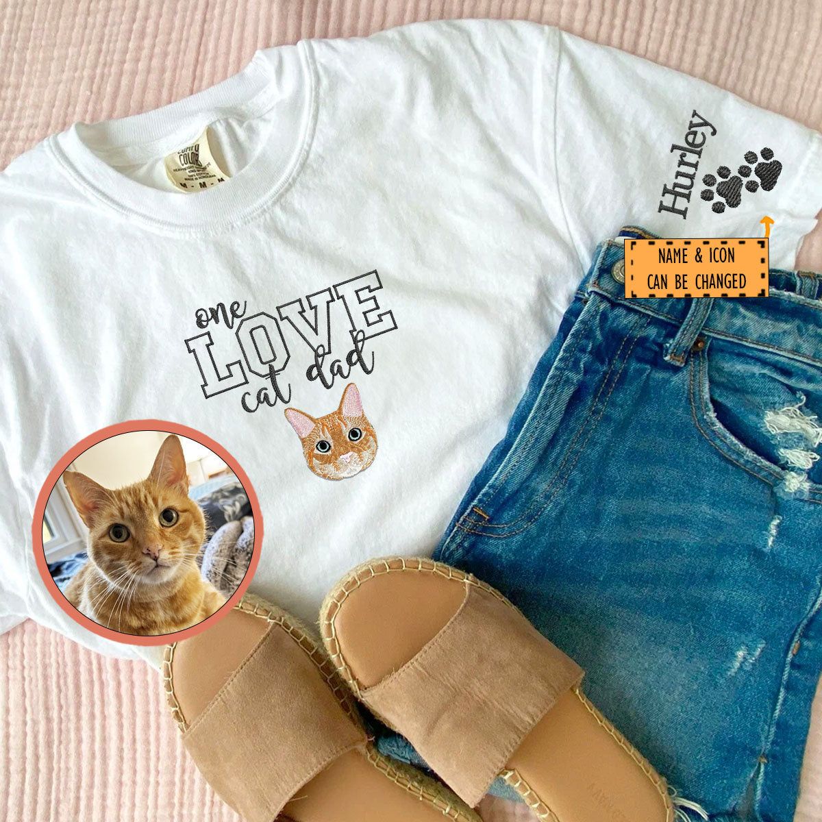 Discover the perfect way to celebrate your unique bond with your cat with our Custom One Love Cat Dad Embroidered T-Shirt. Designed for cat parents who cherish their feline friends, this T-Shirt comes with custom embroidery that showcases a beautiful rendition of your cat. Made from premium materials, it ensures comfort and durability, making it a lasting tribute to your cat. Ideal for cat owners looking for a special gift, our personalized cat T-Shirt is great for Valentine's Day, Mother's Day, Father's Day, Christmas, or simply to brighten someone's day. Its cozy and sturdy design makes it a cherished item for years, always reminding you of the love you share with your cat