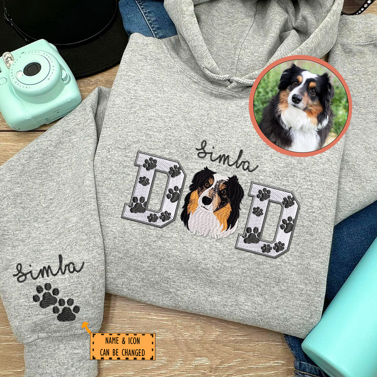 Custom Pet Dad With Pet Photo Embroidered Hoodie