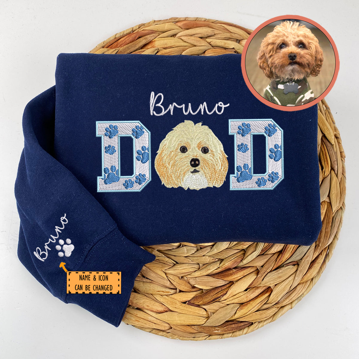 Custom Pet Dad With Pet Photo Embroidered Sweatshirt